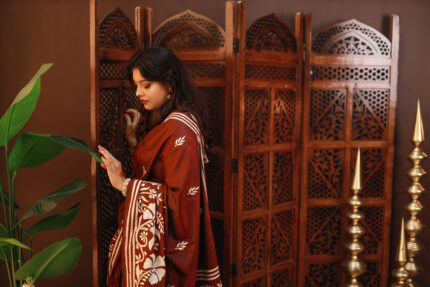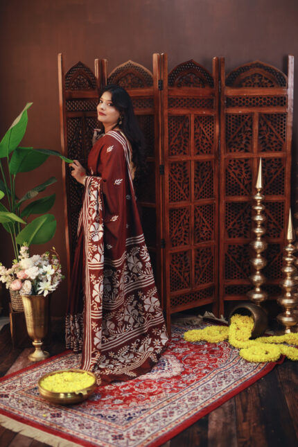 # Black Semi Silk Kantha embroidery Saree