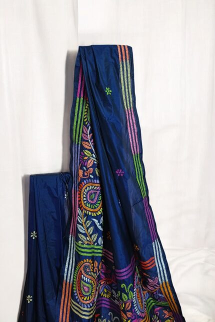 Navy Blue Semi Silk Kantha Embroidery Saree