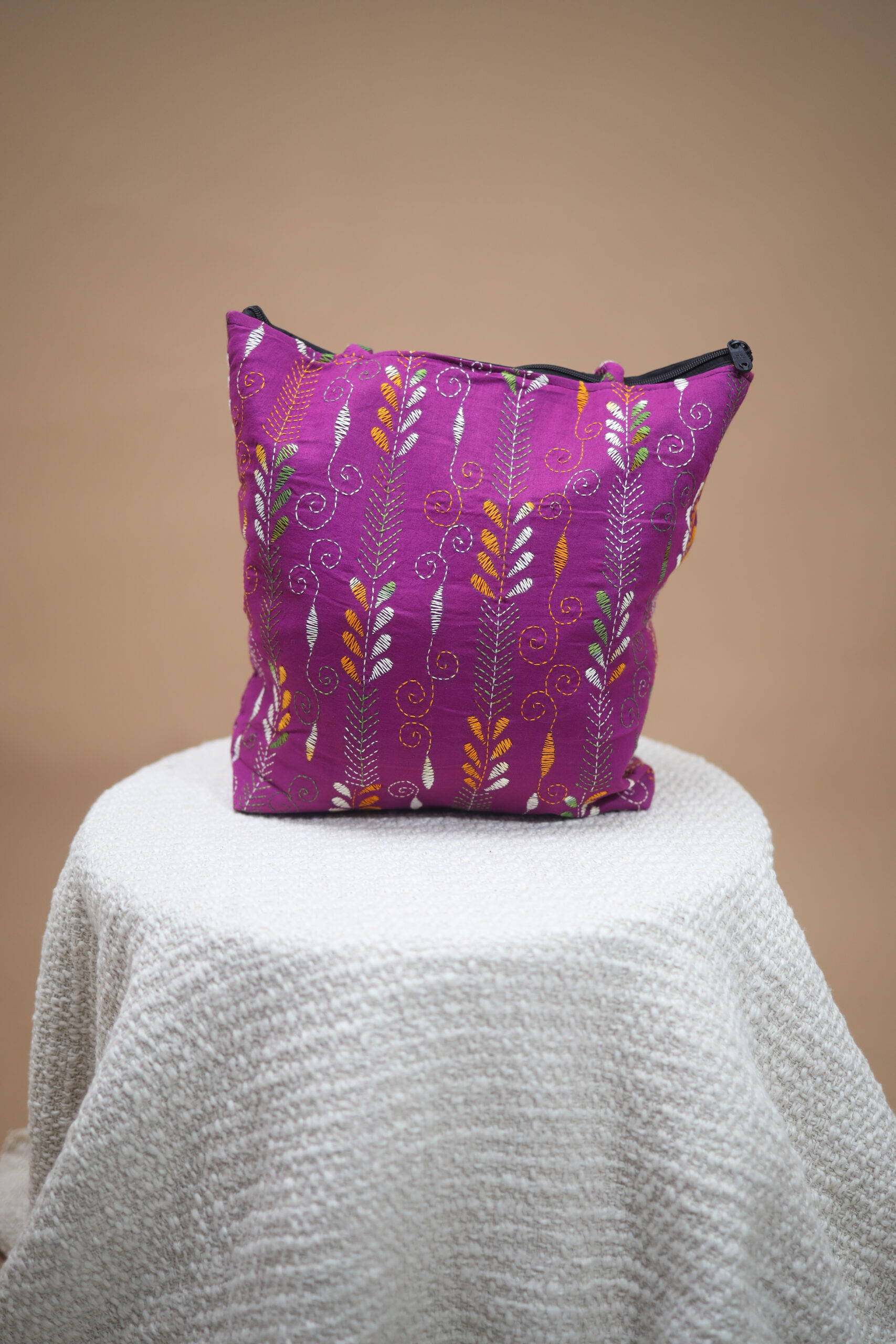 # Purple cotton kantha embroidery tote bag