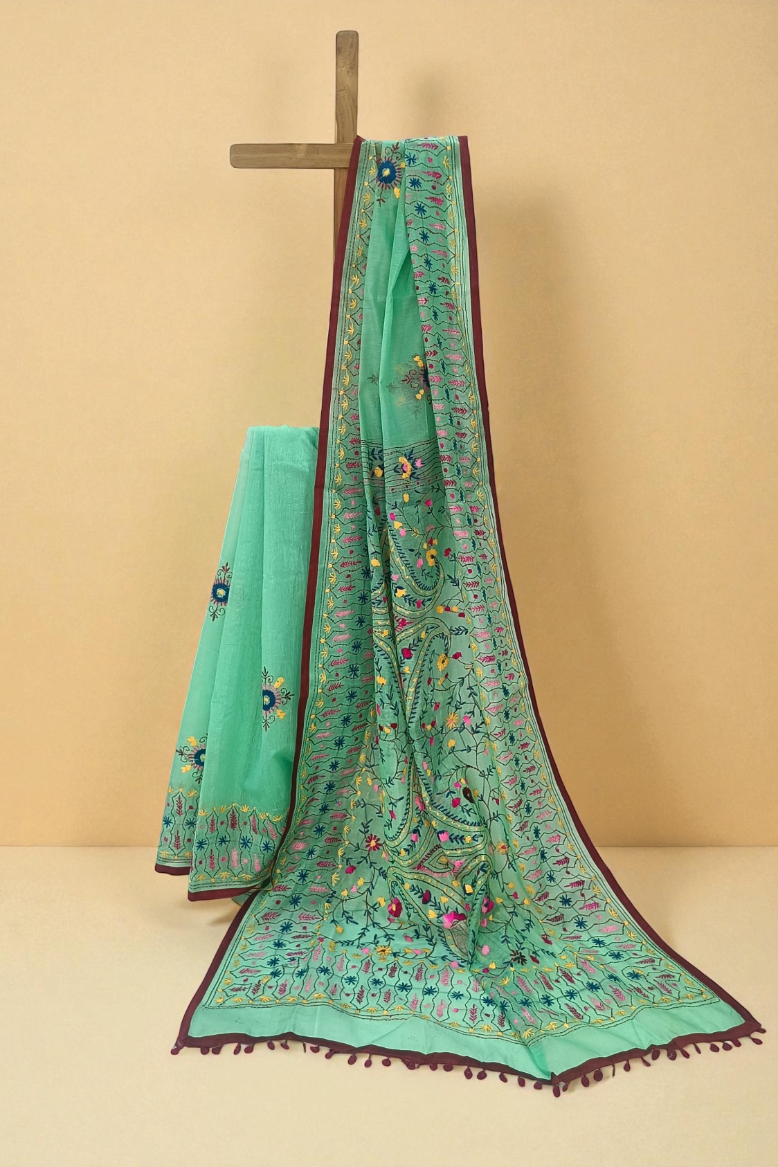 Handloom Cotton, Kantha Stitch, Sarees