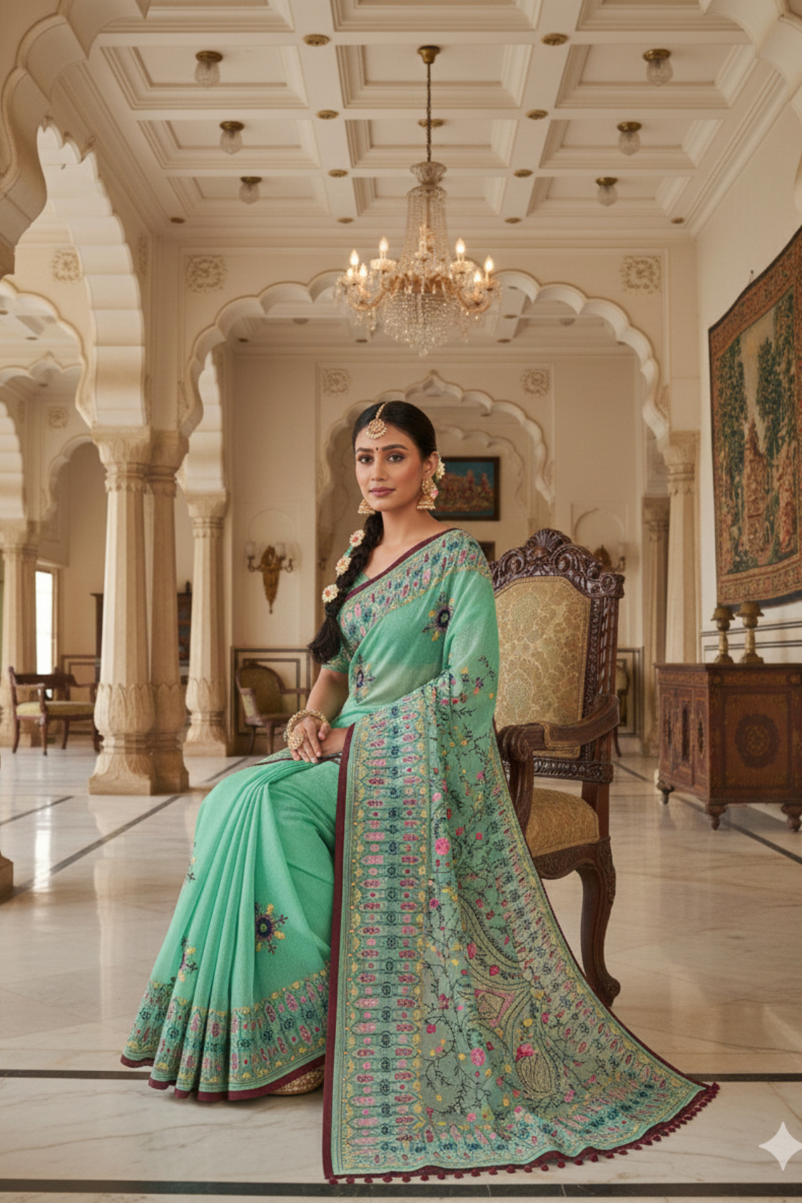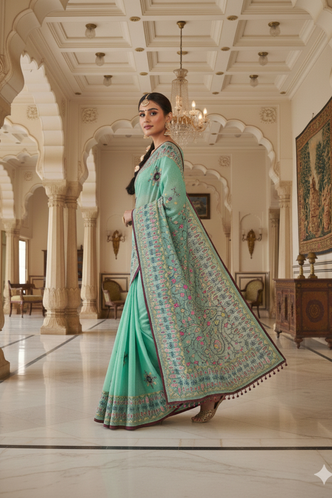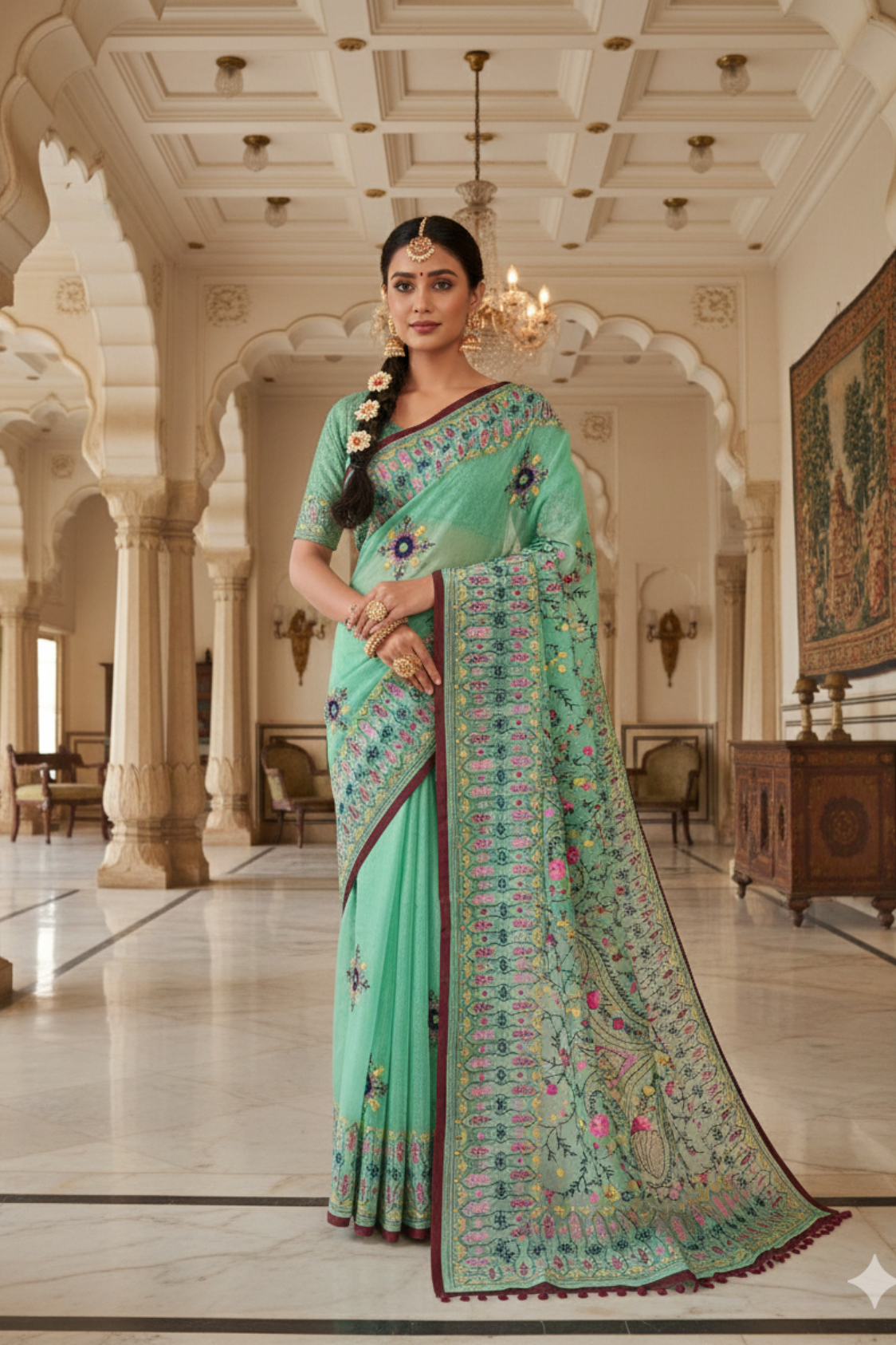 • Color: Serene Sea Green Base with Multicolor Embroidery