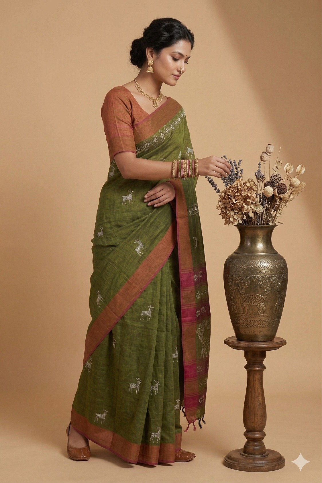 - Occasion Ready: The heavy pallu and unique fawn motifs ensure you look polished for festive lunches, housewarmings, or cultural gatherings.