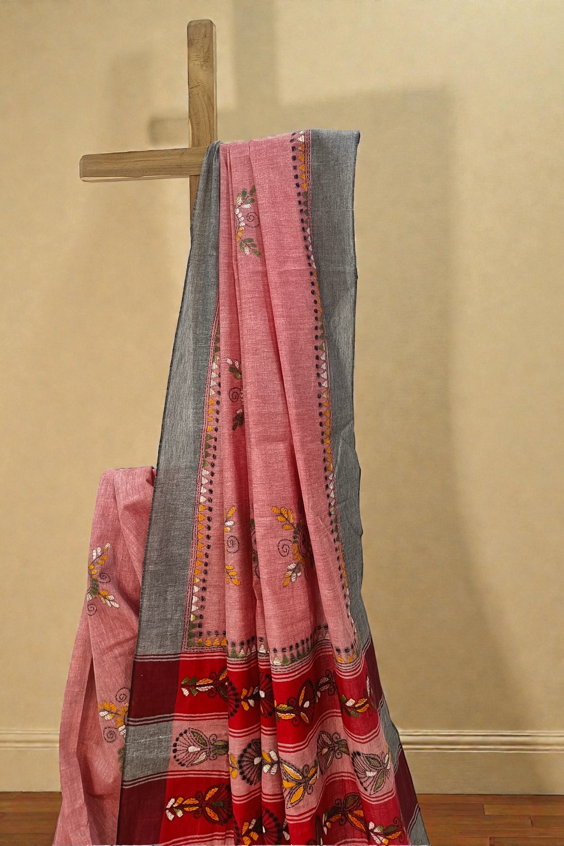 The Radiant Pastel: Onion Pink Khadi Cotton Kantha Saree