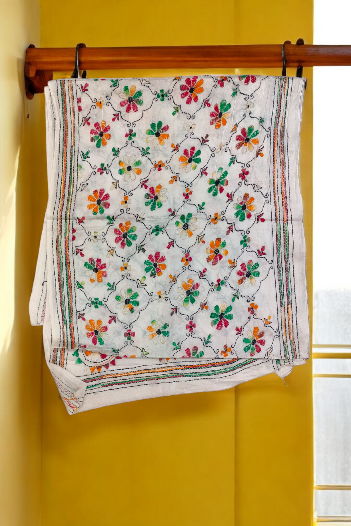 • A Handcrafted Blended Kantha embroidery stole