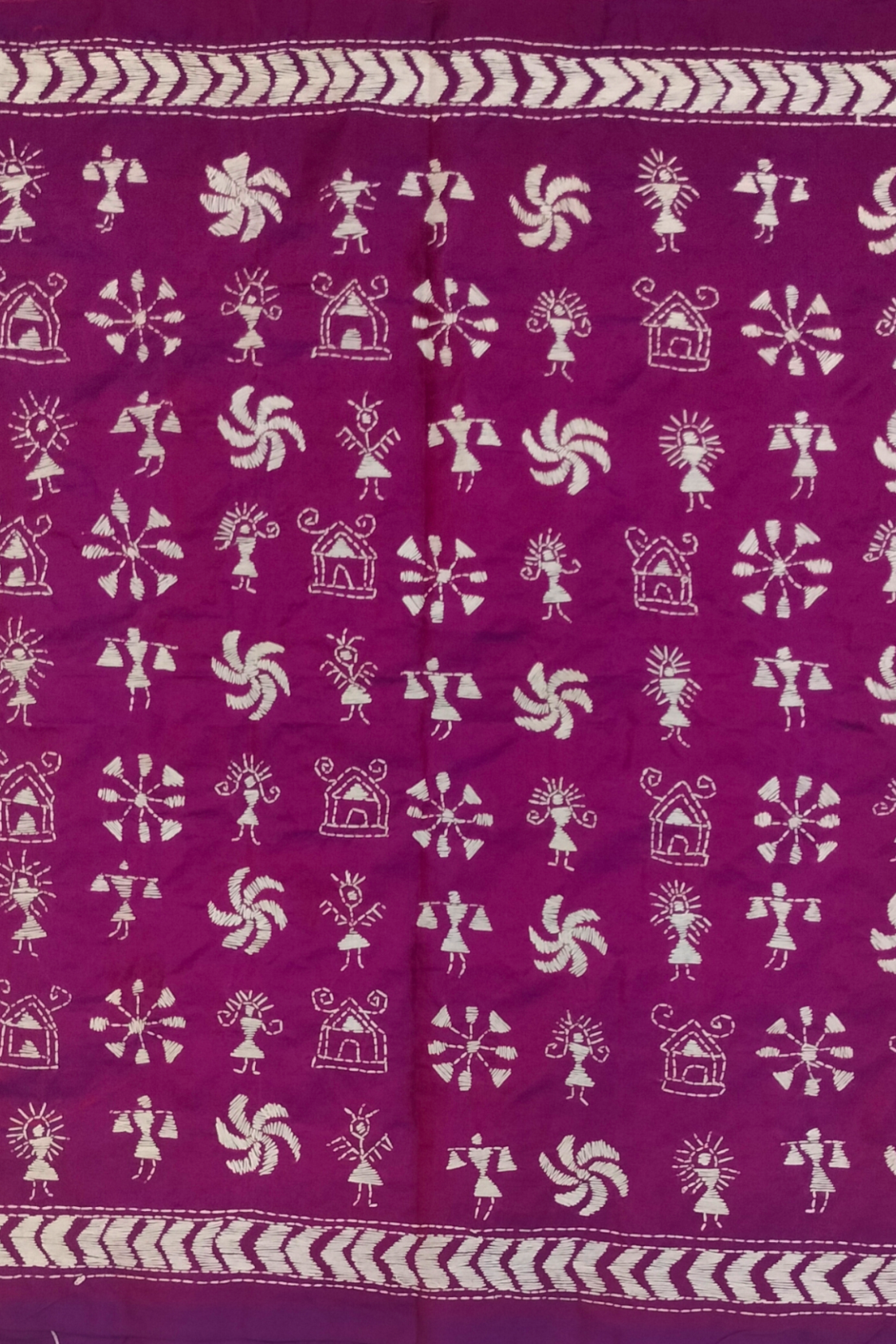 Violet Blended Silk Kantha embroidery stole Festive Gift Box